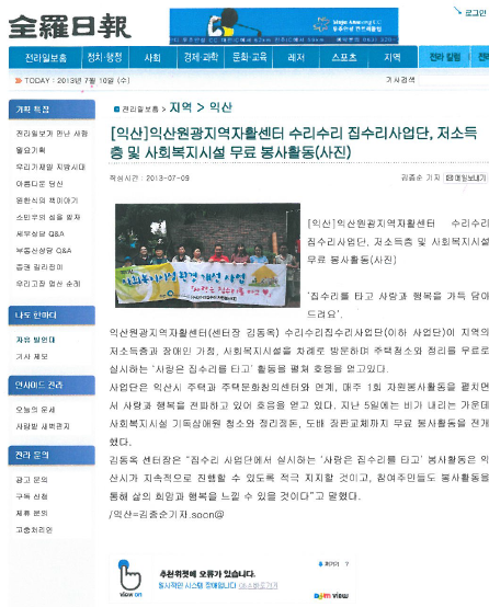 2014-01-22 [전라일보]수리수리집수리사업단 무료봉사