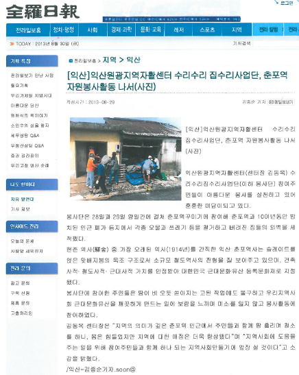 2014-01-22 [전라일보]수리수리집수리사업단 춘포역 자원봉사