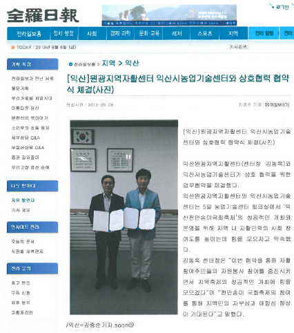 2014-01-22 [전라일보]원광자활, 익산시농업기술센터 협약식
