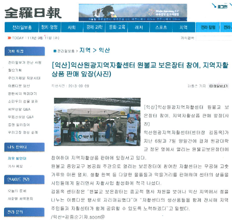 2014-01-22 [전라일보]원광자활, 보은장터에 지역자활상품 판매
