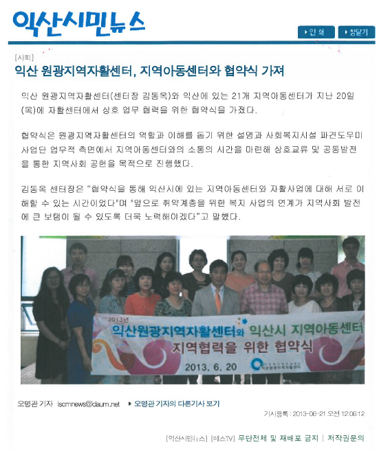 2014-01-22 [익산시민뉴스]지역아동센터와 협약식
