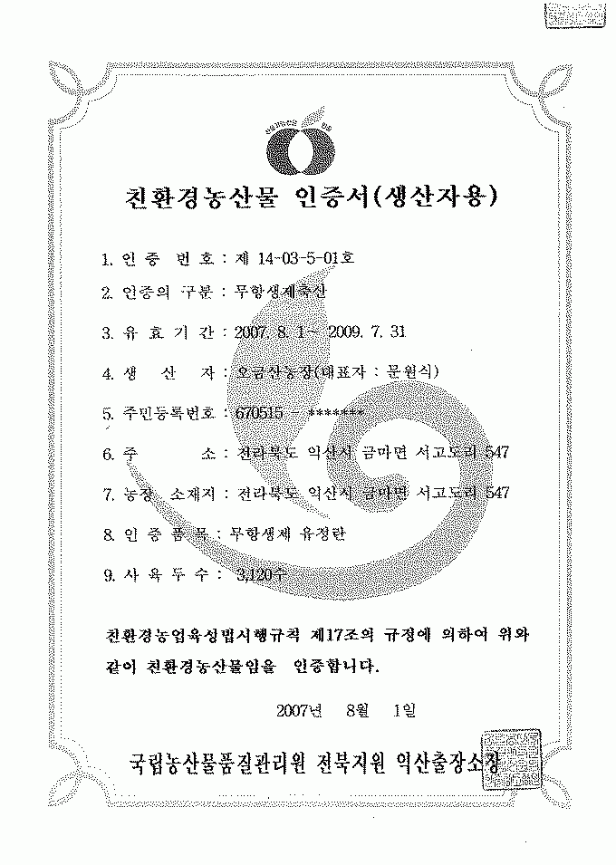 - 이전글2009-09-03 오금산 농장 '황토 유정란 친환경농산물인증(무항생제) 21.02.27